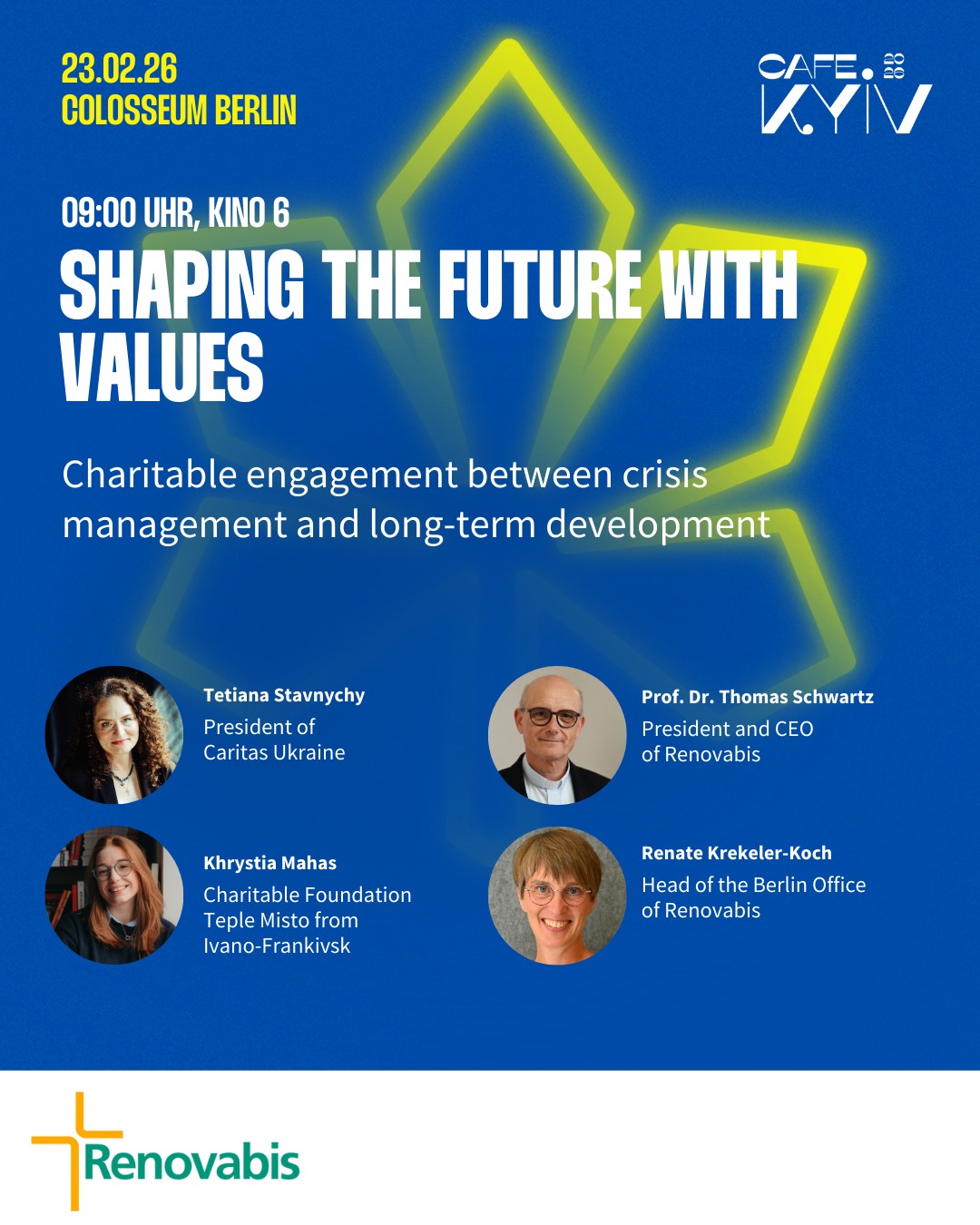 One highlight was the panel “Shaping the Future with Values,” featuring Tetiana Stawnychy (Caritas Ukraine), Prof. Dr. Thomas Schwartz (Renovabis), and Khrystyna Mahas (Teple Misto), moderated by Renate Krekeler-Koch (Renovabis).
